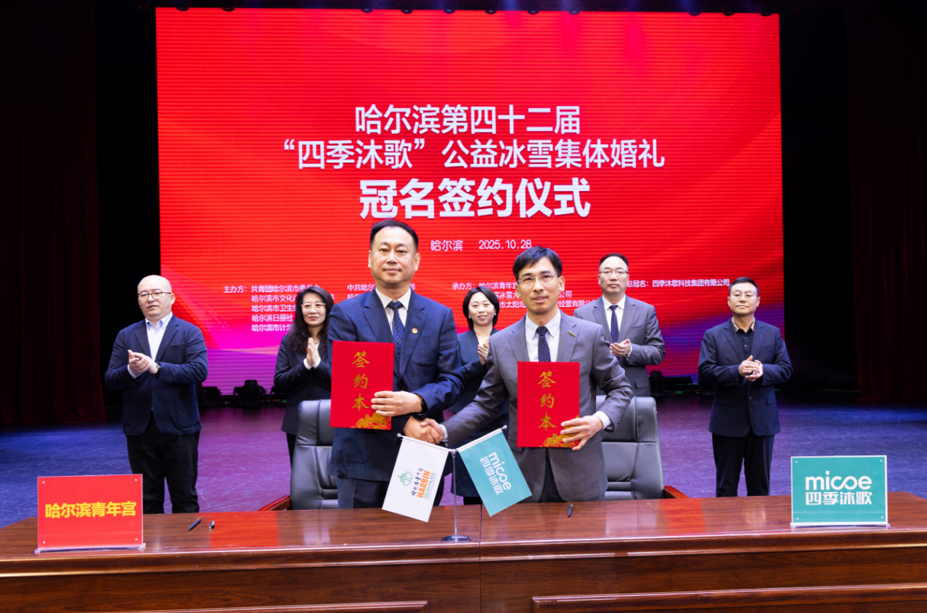 仪式上,哈尔滨青年宫与四季沐歌集团完成签约,同步启动全国新人征集。即日起至2025年12月12日,全国适龄新人可通过四季沐歌集团公众号“婚礼报名”入口踊跃报名,婚礼盛典将于2026年1月6日在哈尔滨冰雪大世界启幕,新人们将在冰雕城堡前交换誓言。