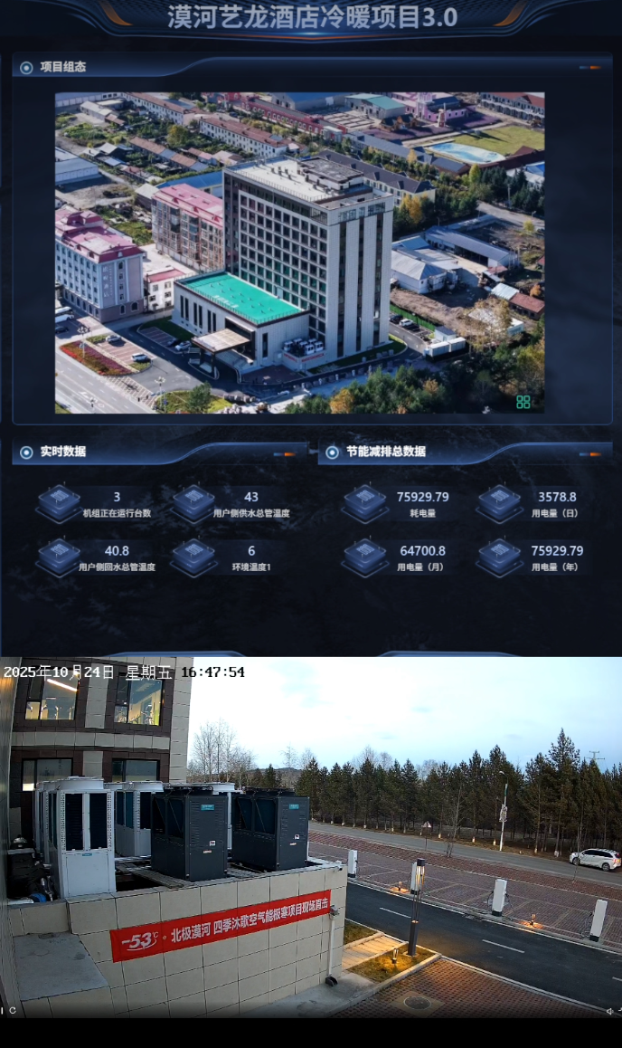 10月,极北漠河,四季沐歌漠河艺龙酒店项目开启线上直播,日行实时动态数据面向公众开放。关注“四季沐歌清洁采暖热水”视频号,每日定时直播,线上实时观测四季沐歌漠河酒店供暖系统运行状态。