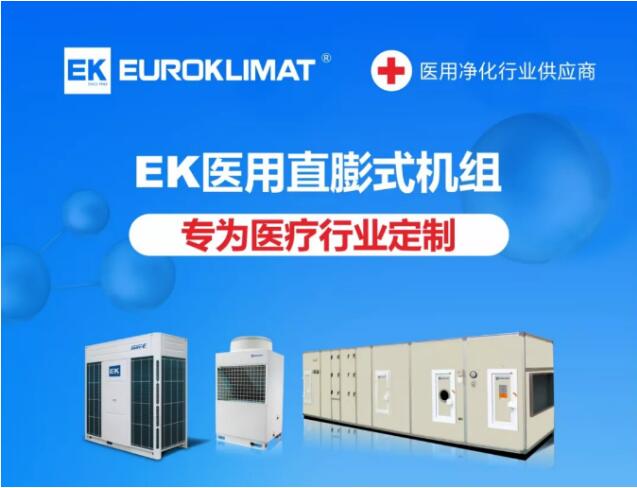 医院建筑布局复杂,功能科室多,易感人群高度集中,多种病源并存。门急诊科室是疾病传染的重灾区,尤其在呼吸道传染病流行(流感)期间,门急诊超负荷运转,患者和陪同人员大量增加,室内空气中含有大量的流感病毒。为了防止医患人员互相传染,医院洁净空气环境就用EK净化型全新风直膨机组守护。