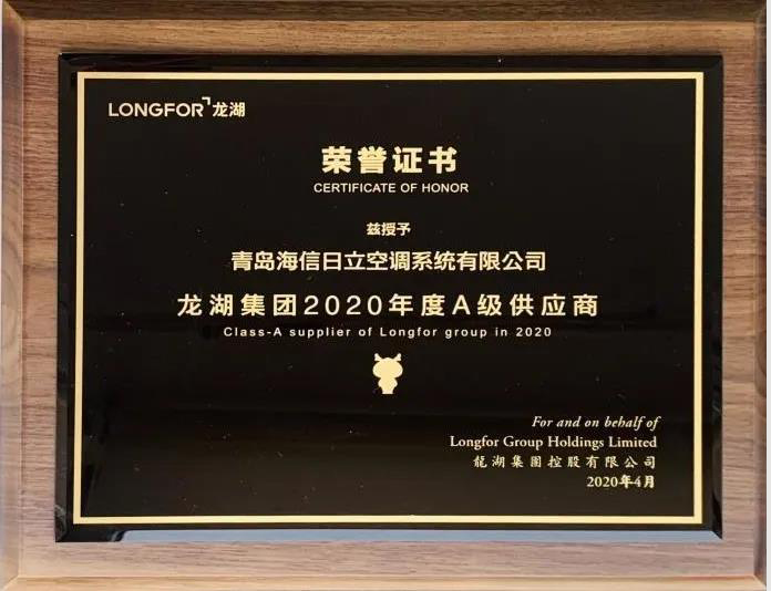 海信日立荣获龙湖集团2020年度“A级供应商”称号