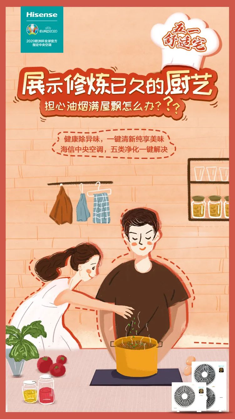 以防料理油烟满屋飘影响胃口,还可以打开海信中央空调健康功能,纳米级水离子能深入衣物纤维,强力瓦解油烟、宠物等顽固异味,一键清新让味蕾纯享美味...
