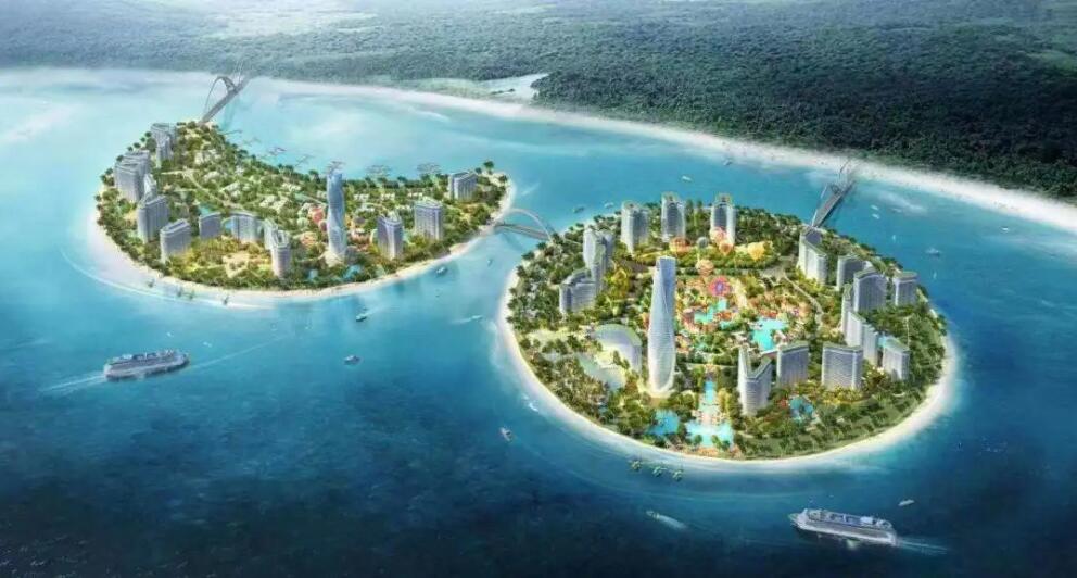 日月湾旅游度假区整体规划约3.45万亩,涵盖填海打造的日、月双岛及岸上的五大度假主题分区。目前正在打造的日岛总规划约840亩,总建筑面积约 76 万㎡,汇集伊甸园婚礼教堂、科尔马风情商业街、音乐喷泉、水上乐园、星级度假酒店等诸多精品度假生活配套。