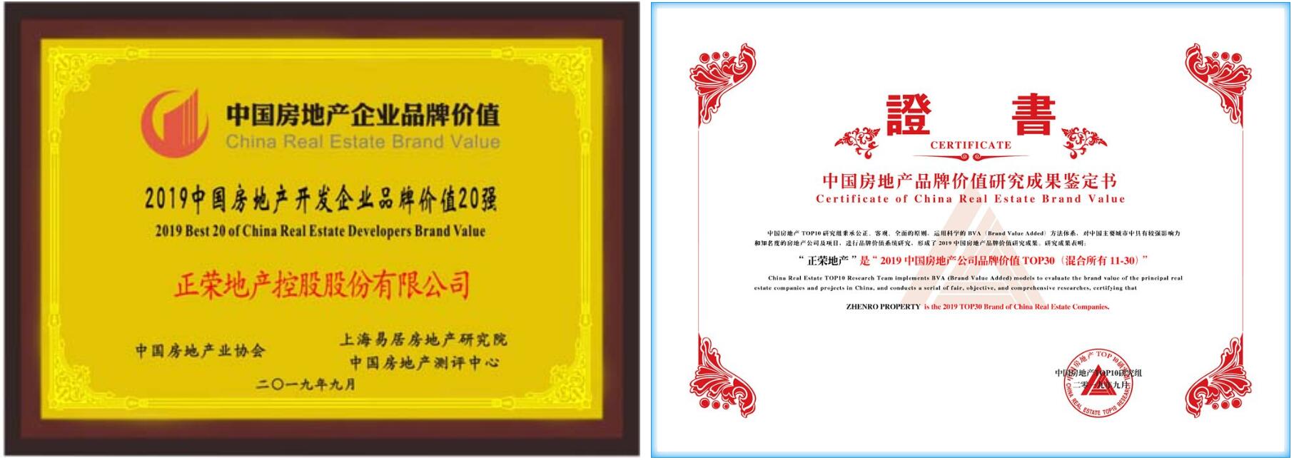正荣地产荣获“2019中国房企综合实力TOP20”排行榜第17名,并揽获 “2019中国房地产公司品牌价值TOP30”、“2019中国房地产企业十大营销铁军”、“2019中国房地产企业专业特色奖”等三项大奖。坚持深化“1+6+X”的全国化战略布局,立足“改善大师”的品牌定位,专注打造美好生活,开发高品质住宅物业。