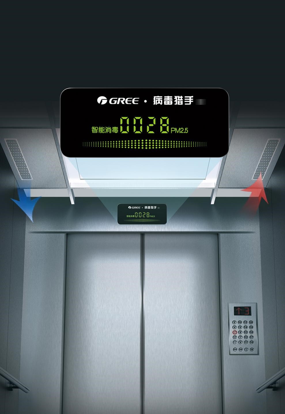 第二点,从电梯这一空间环境下手,减少电梯间病毒空气传播的可能性。除了日常消毒和用纸巾按键的方法外,校方可安装格力最新研发出的“猎手”系列空气净化器电梯专用KXJFA300-A03。