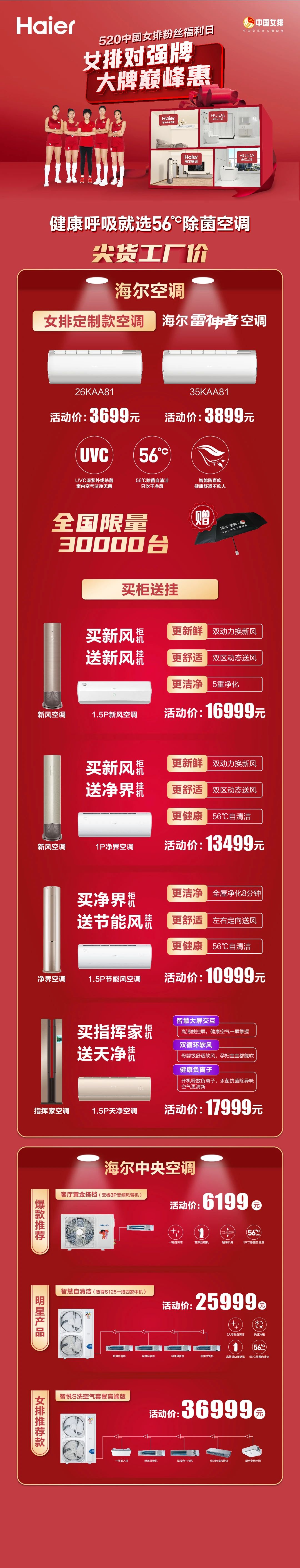 更有女排定制款雷神者空调限量发售!