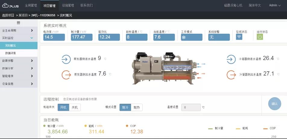 海尔磁悬浮中央空调依托于E+云服务平台,使设备实现节能运行、无人值守、故障预警、实时交互、能耗分析、智能维保六大功能,减少酒店人工成本,省力又省心。