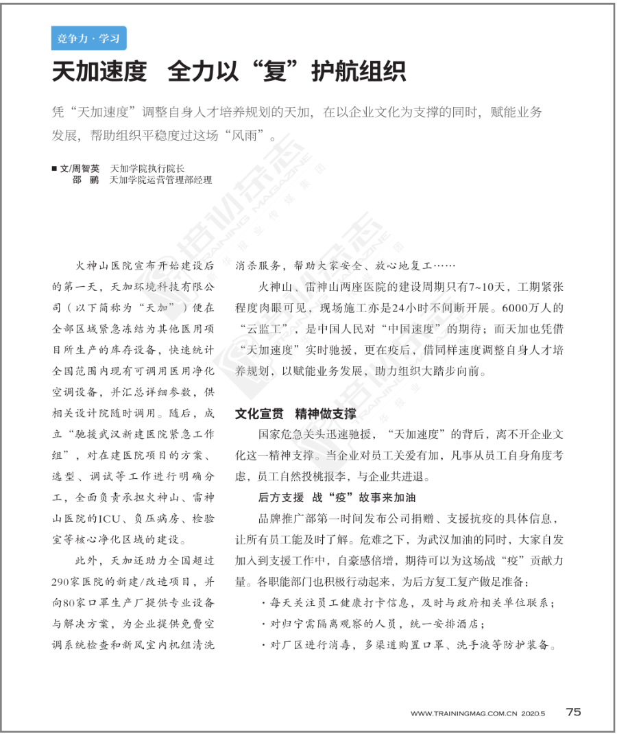 天加学院应邀为《培训》杂志疫后复苏专辑撰稿