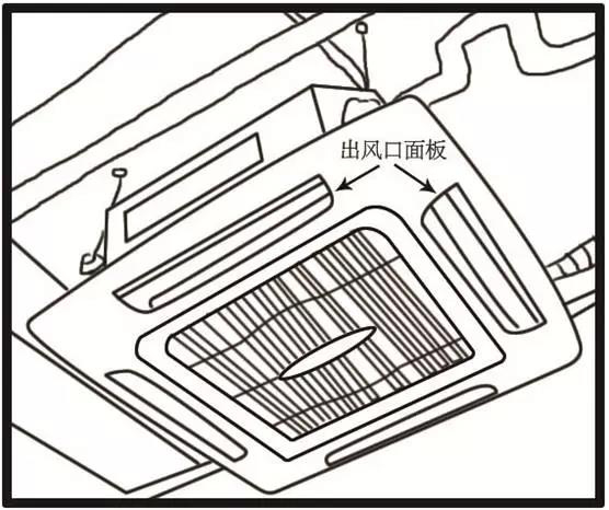 ②对于家用中央空调的风口,除了能遇到上面这种风管式,可能还会看见下面这样的嵌入式天花机,而它的出风口就在天花机的四边(如下图),清理顺序也是一样的。