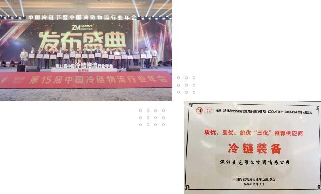 麦克维尔携全系列的冷链产品方案闪耀亮相本届冷链物流年会,同时凭借先进的产品荣获了质优、品优、价优“三优”冷链装备推荐供应商奖。