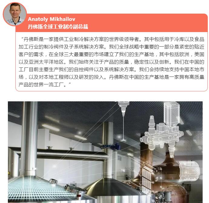 在过去5年,氨制冷安全深刻的改变了市场结构,趋于自动化和安全高效,把握行业发展动向,提升氨制冷系统应用水平,全面覆盖二氧化碳工业制冷应用,低充注氨系统,二氧化碳系统将会成为助力中国碳中和战略的市场先导。丹佛斯工业制冷在全球战略下,匠心打造了多元化与与可靠性并驾齐驱的数字化智能产线。