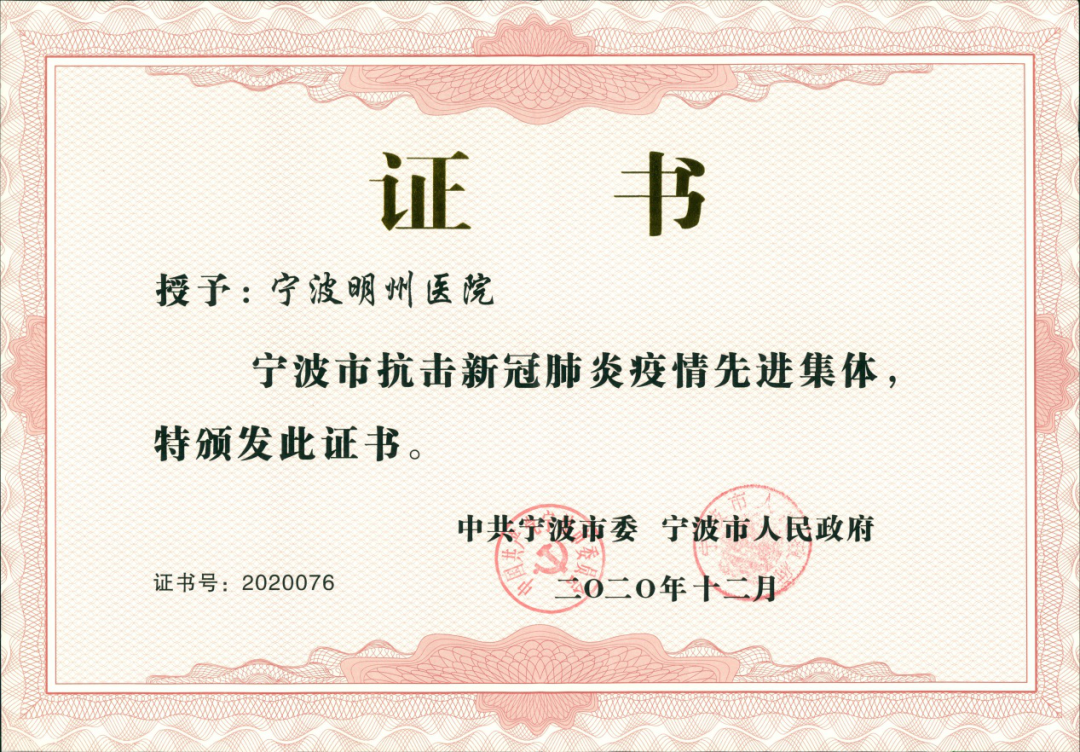 12月11日,在宁波市抗击新冠肺炎疫情暨“六争攻坚、三年攀高”行动表彰大会上,宁波明州医院荣获【先进集体】称号。