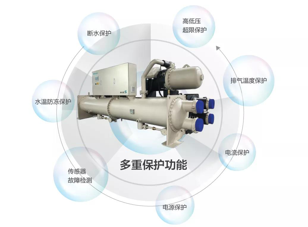此外,机组拥有水温防冻保护、断水保护、高压保护、低压保护、过电流保护、电源保护、排气温度保护、传感器故障检测等保护控制,确保机组在复杂的运行环境中安全运行,保持良好状态。