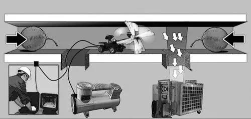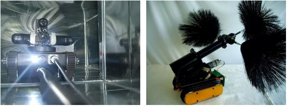 通风管道系统的清洗是清洗工作中的关键难点,因为通风管道一般在吊顶内,即使不在吊顶内因为风管都是密封连接的,也很难清洗,常采用机械清洗方法。现在常见的清洗方式是从机组的帆布软连接处将检测机器人或气动机器人放置在通风管道内,通过管道外的机器人操控箱控制通风管道内的清洗机器人,对于含尘量较多的管道系统还得用风管集尘器彻底收集管道中的垃圾,以防止造成二次污染。