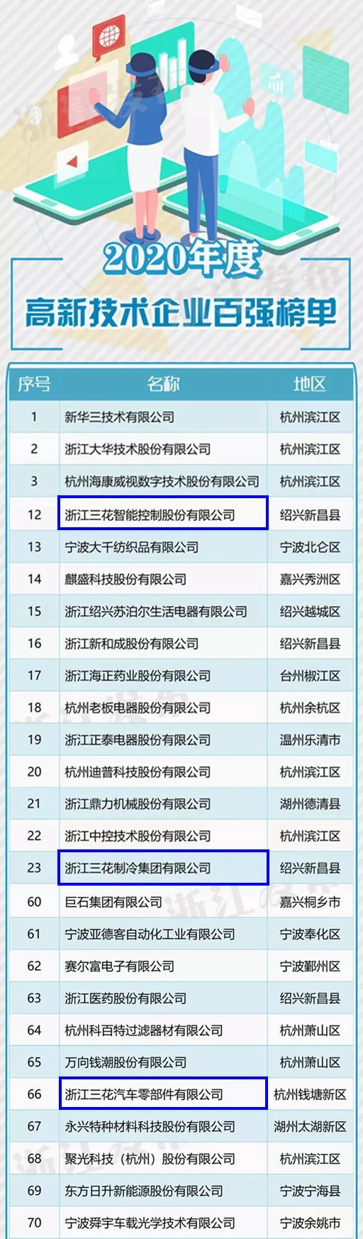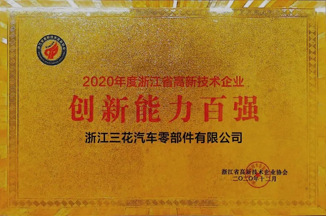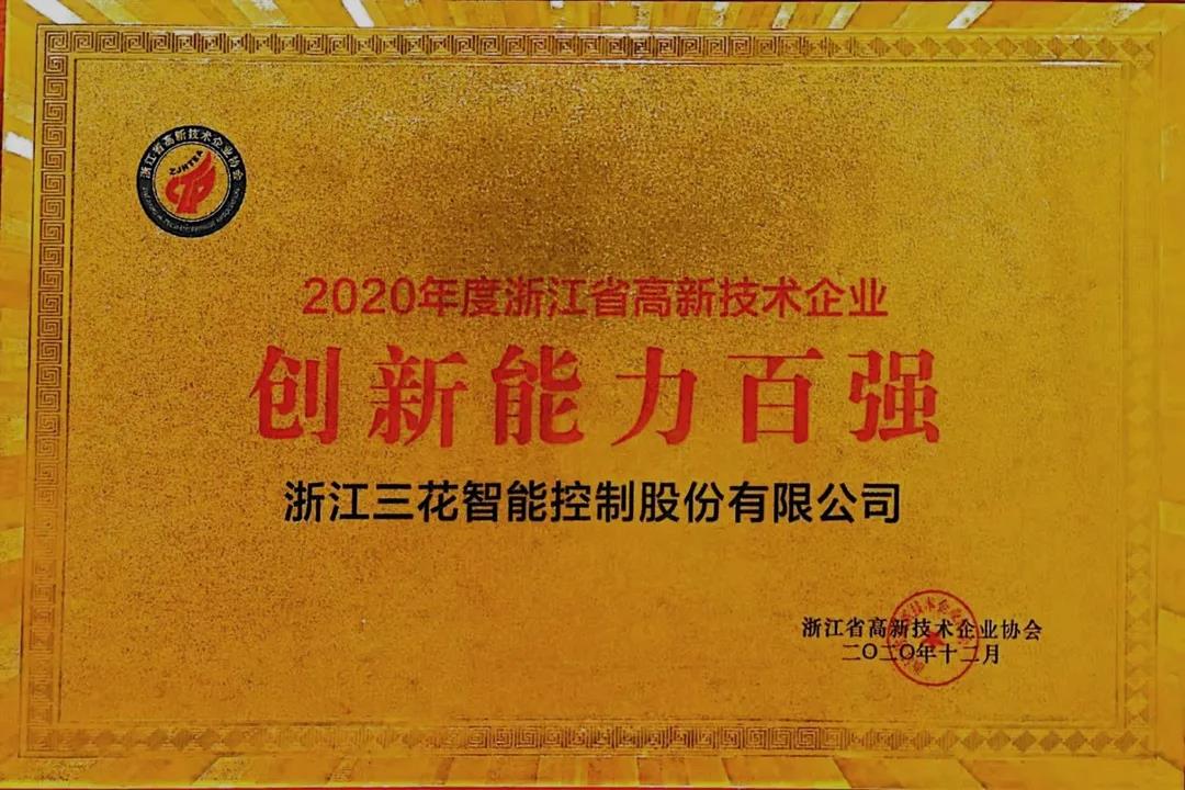 三花智控等3家三花系企业荣获2020浙江高新技术企业创新能力百强