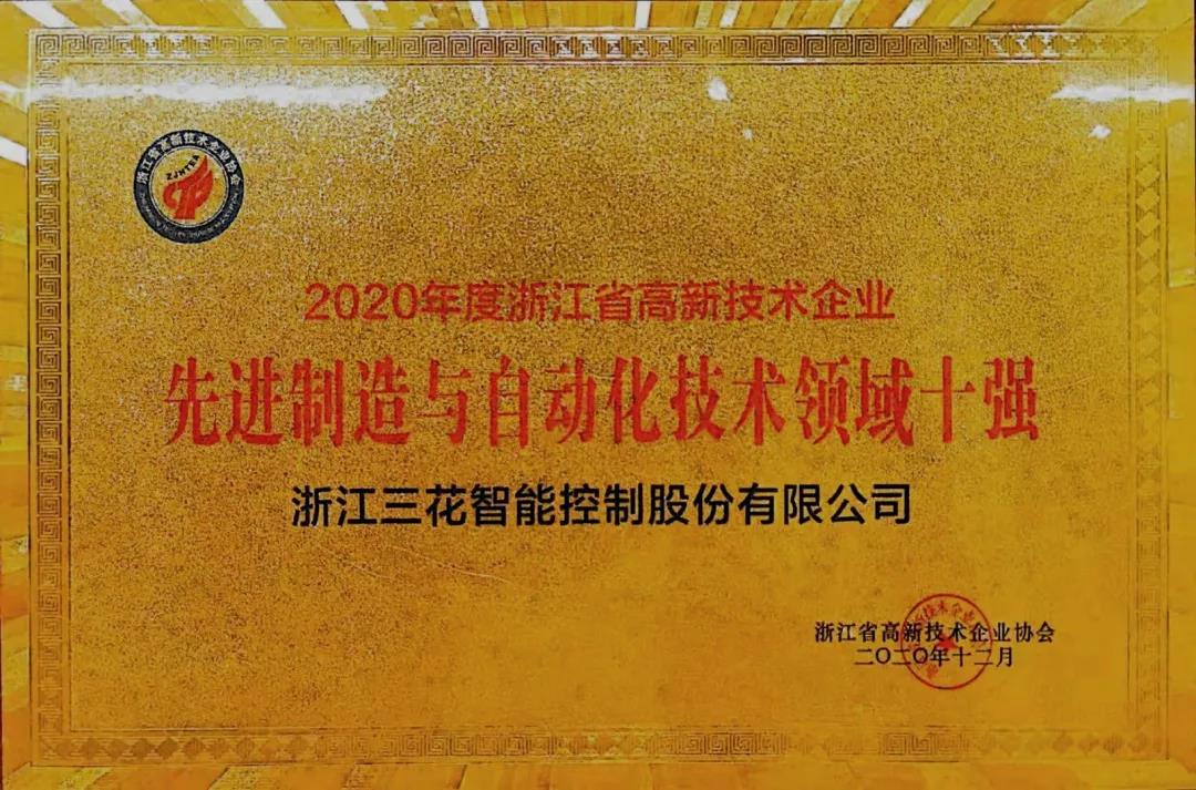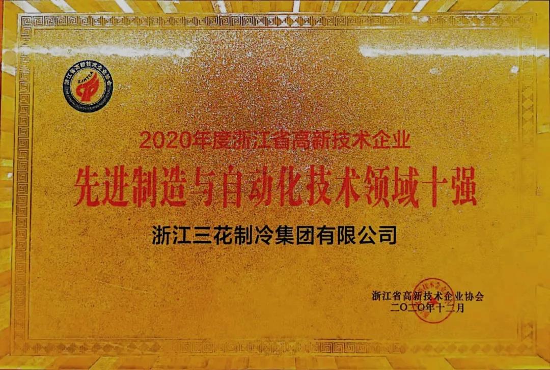 12月18日下午,浙江省高新技术企业发展大会在杭州召开。大会表彰了2020年浙江省高新技术企业创新能力百强和行业十强并授牌。三花智控、三花制冷、三花汽零入围浙江省高新技术企业创新能力百强榜单。同时,三花智控和三花制冷荣获先进制造与自动化行业十强。