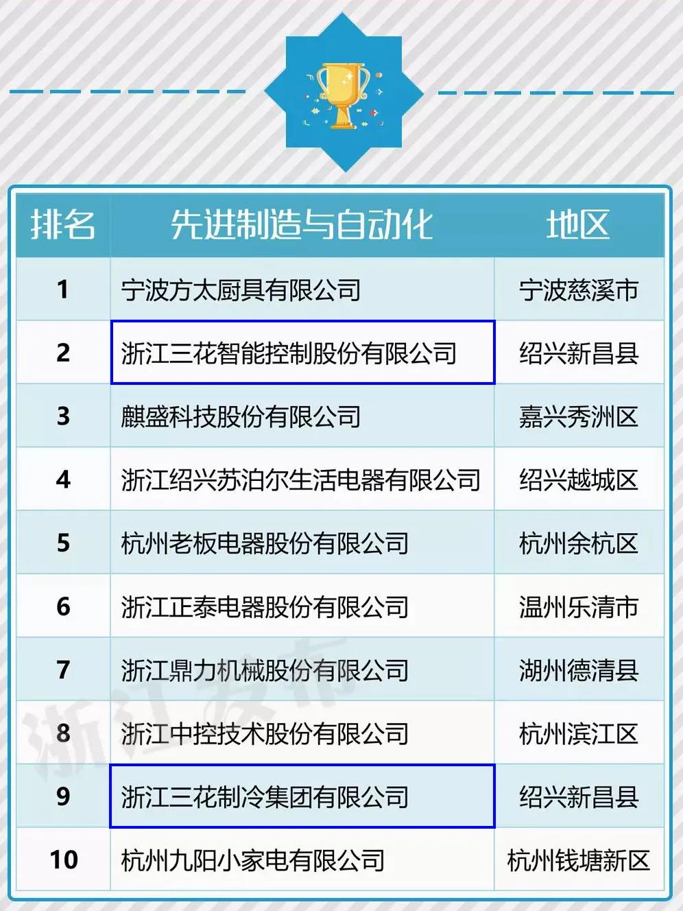 先进制造与自动化行业十强——三花智控