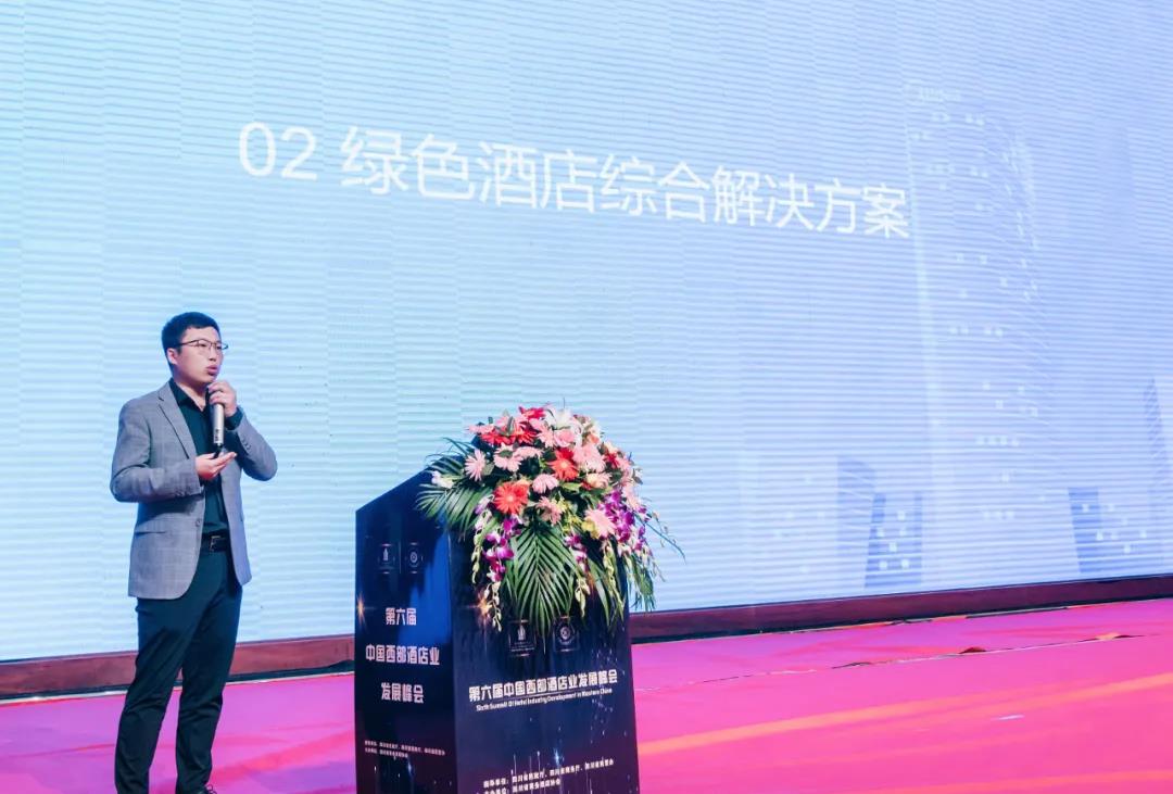 会上,美的暖通与楼宇商业服务行业销售经理丁清南先生作了《美的暖通与楼宇,助力绿色酒店发展》的主题分享。丁清南首先展示了美的集团及暖通与楼宇事业部雄厚的企业实力和业务范围,并分享了美的暖通与楼宇打造的绿色酒店综合解决方案和高端酒店能效提升解决方案,涵盖了美的自主研发的磁悬浮变频离心式制冷机组、烈焰低温采暖系统、烈焰低温热水系统和M-BMS智慧楼宇控制等名优产品及部件,致力于从空调制冷、空调采暖、中央热水和智慧楼宇等方面为中高端酒店打造智能、绿色、舒适的顶级客户体验。