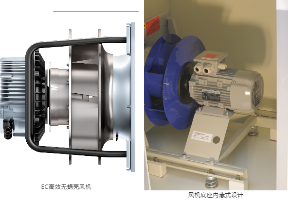 ●为保证卫生,机组避免采用皮带传动的风机, 宜采用无蜗壳风机