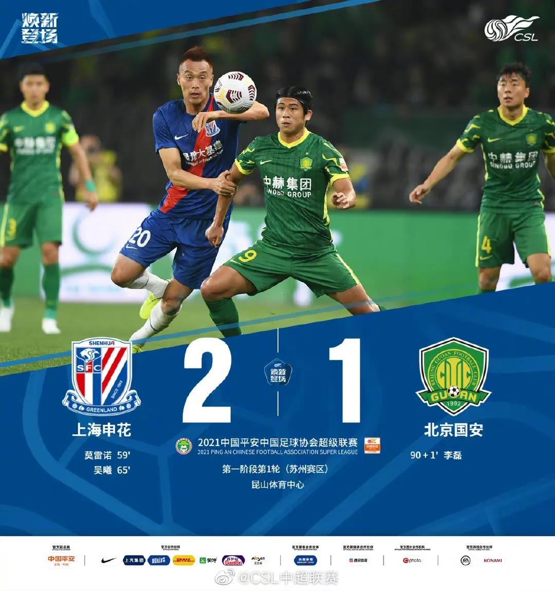 虽然北京国安靠李磊进球扳回一分,但比赛所剩时间已经不多了,上海申花最终以2-1战胜对手,拿下赛季开门红!