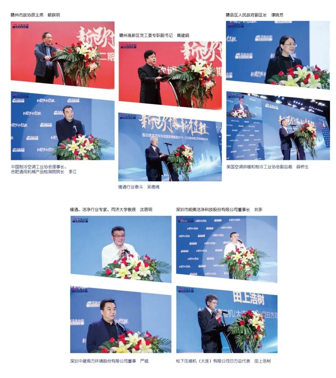 赣州市政协原主席赖联明,赣州高新区党工委专职副书记黄建鸫,赣县区人民政府副区长谭晓芳,中国制冷空调工业协会理事长、合肥通用机械产品检测院院长李江,暖通行业泰斗吴德绳,美国空调供暖和制冷工业协会副总裁薛桥生,暖通、洁净行业专家、同济大学教授沈晋明,深圳中建南方环境股份有限公司董事严斌,深圳市朗奥洁净科技股份有限公司董事长刘永,松下压缩机(大连)有限公司日方总代表田上浩树,欧博集团董事长詹峻等相关政府领导、行业专家、合作伙伴、欧博高层领导及媒体朋友们等嘉宾悉数到场,共同见证欧博新一轮的腾飞。