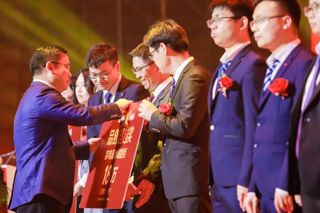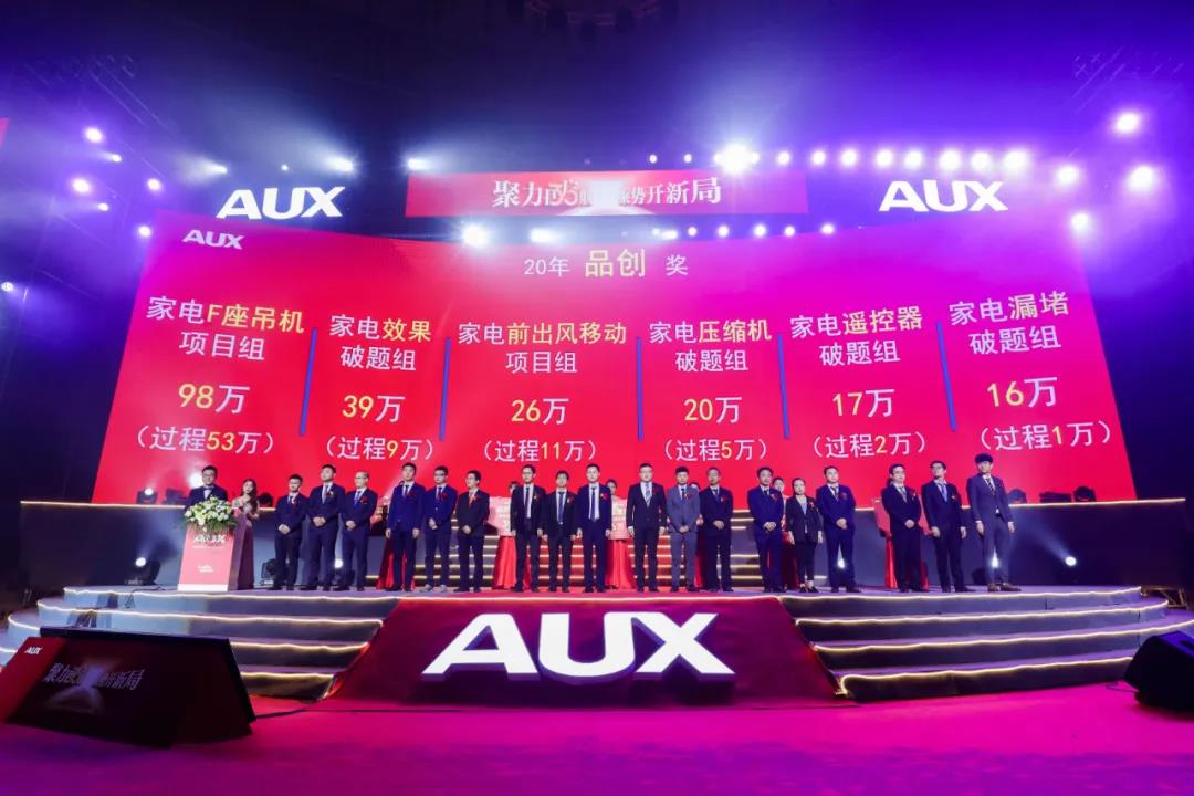 奥克斯集团始终强调的产品理念“品质是基石、创新是灵魂”,因此设立“球一奖”,即全球第一最高奖金1375万,“国一奖”全国第一最高奖金900万。本次大会首先就品质创新板块对2020年的工作予以总结与表彰——过去一年,集团品创战硕果累累,项目达成77个,实发激励1000万元,各大破题组齐头并进,通过高目标导向,高激励牵引,激发全员参与品质创新的热情。