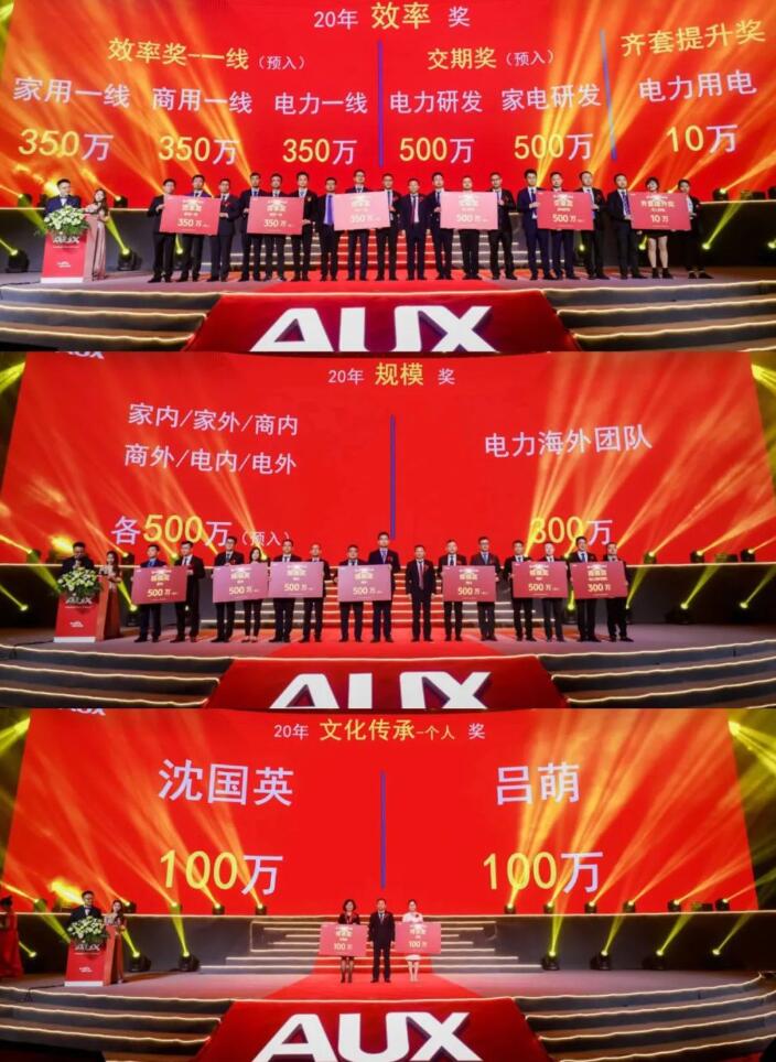 公司历来倡导“多拿奖金是贡献”,本次颁奖盛典从品质创新、IT、人才、营销,效率等板块对奥克斯集团过去这一年的成果进行了阶段性的总结,并对优秀团队和个人给予了高额的嘉奖,年会的总奖金额为9671万元,较19年提高3倍,创历年奖金之最。