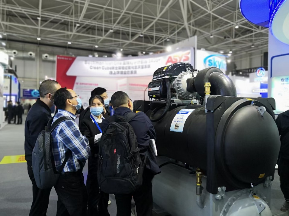 据现场工作人员介绍,该机组源自欧洲磁悬浮技术,采用100%无油设计和模块化设计,应用更灵活。可适用于医院、工艺制冷场所、数据中心、超高层写字楼、酒店、商业场所等。
