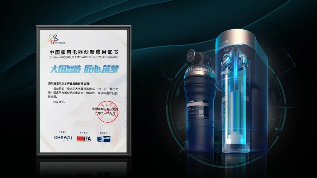 2021(第十七届)中国家用电器创新成果暨2020-2021年度中国家用电器行业品牌评价结果发布会于9月16日在北京举行,安吉尔A7 Pro大水量净水器荣获年度产品创新成果奖。
