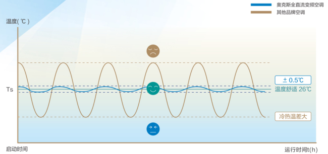 采用复合控温技术,检测室内机室外机运行工况,调节室外机能力输出,以此优化室内气流组织,温度波动控制在0.5℃内,告别忽冷忽热。