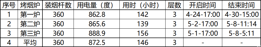 三炉烟草烘烤数据表