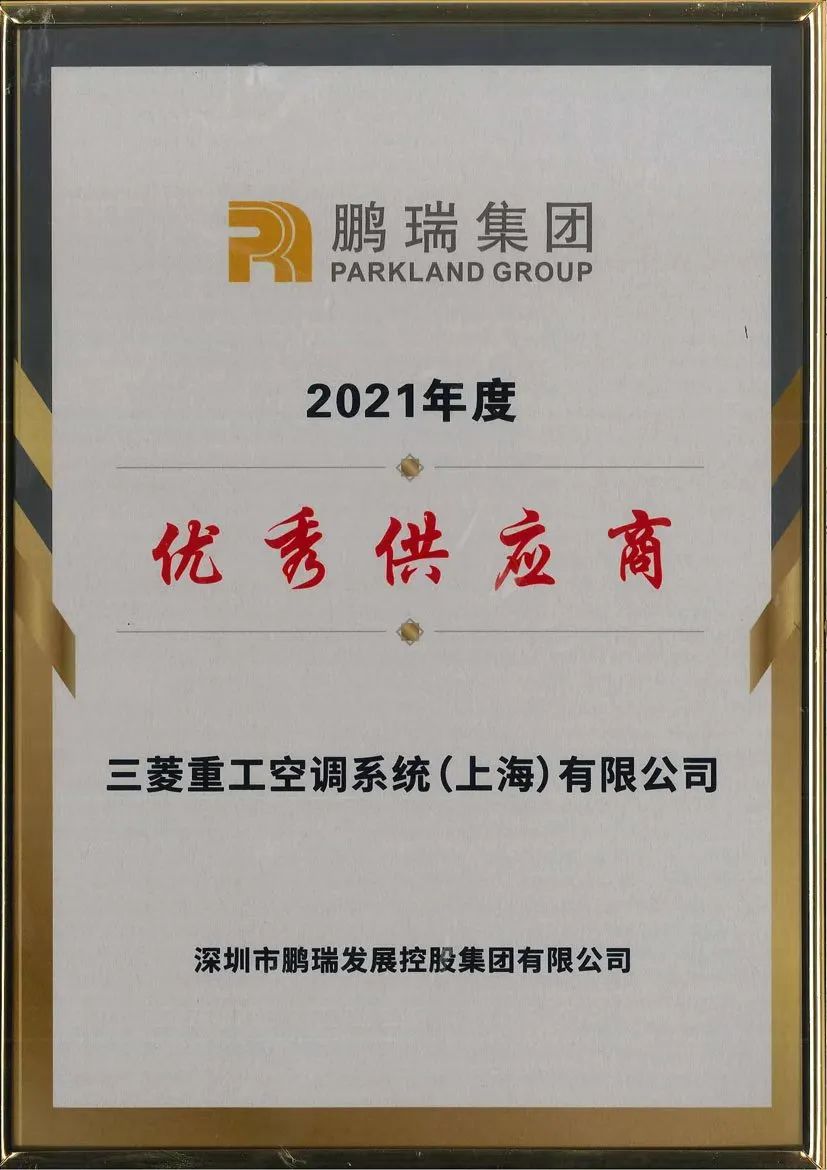 三菱重工空调荣膺“鹏瑞集团2021年度优秀供应商”奖项