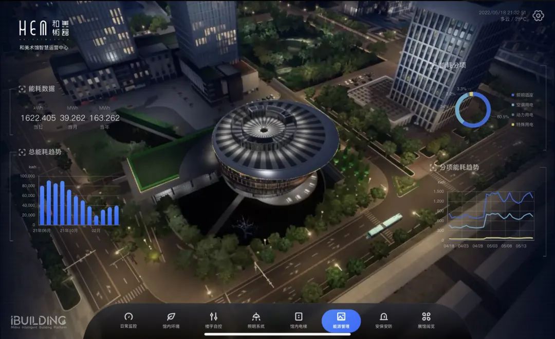 依托美的楼宇科技iBUILDING数字化平台,运用数字孪生构筑和美术馆“数字孪生体”,打造智慧运营中心(Intelligent Operations Center,简称IOC),从而实现全流程数字化可视化。通过全局智慧运营视角实现了数字世界与真实和美术馆的“虚实互动”,打造数字化美术馆智慧样板。
