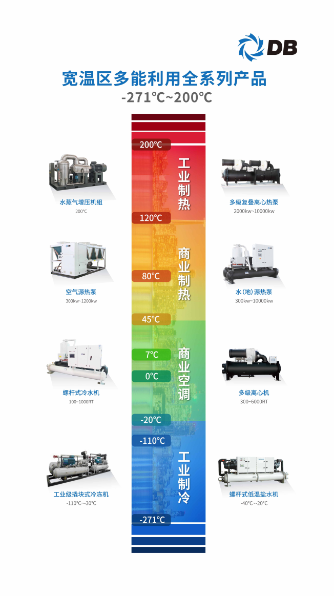 作为一家拥有120年+历史的中央空调生产品牌,顿汉布什的产品种类也很多,拥有包括离心机产品、螺杆机产品、工业冷冻等十大类产品,产品系列多达123个,从主机到末端上万种型号的产品可以根据客户的需求进行搭配选择,满足个性化需求的同时为客户创造更大的价值。顿汉布什的宽温区产品方案。从-271℃~200℃这接近500℃的跨度,在行业里屈指一数。可以很好满足各个领域、各个功能的建筑所需。
