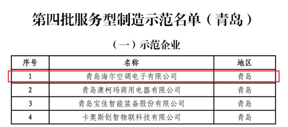 近日,青岛第四批服务型制造示范企业名单公布,海尔中央空调成功入选,再一次印证了行业领先地位。