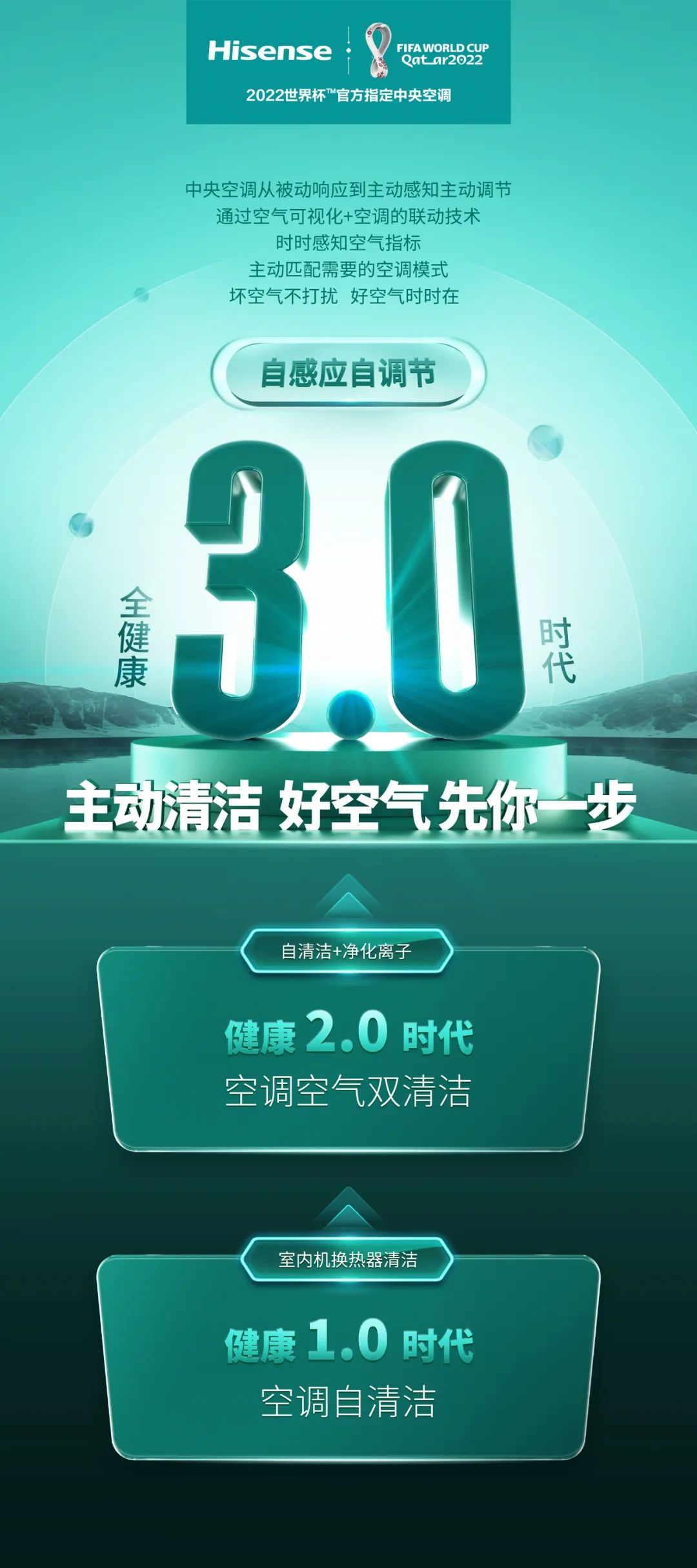 在此基础上,海信中央空调通过空气可视化与空调联动技术,实时感知室内空气指标变化,并主动匹配需要的空调模式,让用户轻松享受好空气的时刻相伴。从实现空调自清洁的健康1.0时代,到空调空气双清洁的健康2.0时代,再到自感应自调节、主动服务的全健康3.0时代,海信中央空调一直引领着中央空调技术的跃迁升级,为行业发展树立起新的标杆。