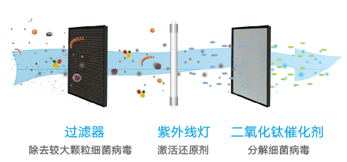 麦克维尔空调可配置纳米级二氧化钛光触媒杀菌组件,呼吸保障再加码!纳米光(UV紫外光)照射在纳米级二氧化钛催化剂的表面,形成氧化力极强的自由基(-OH)和超级氧化离子(O₂¯),可以向内全覆盖内机换热器,消灭蒸发器上的细菌病毒,灭菌无残留,避免空调内部污垢残留造成出风污染,实现空调内部洁净到室内空气洁净。