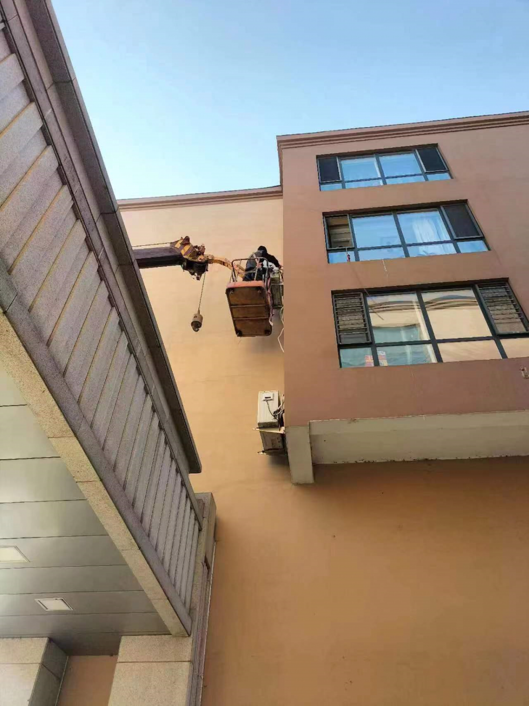 大连一名用户空调外机无法作业,室内寒冷无比,海尔空调紧急联系吊车,即时安装到位。