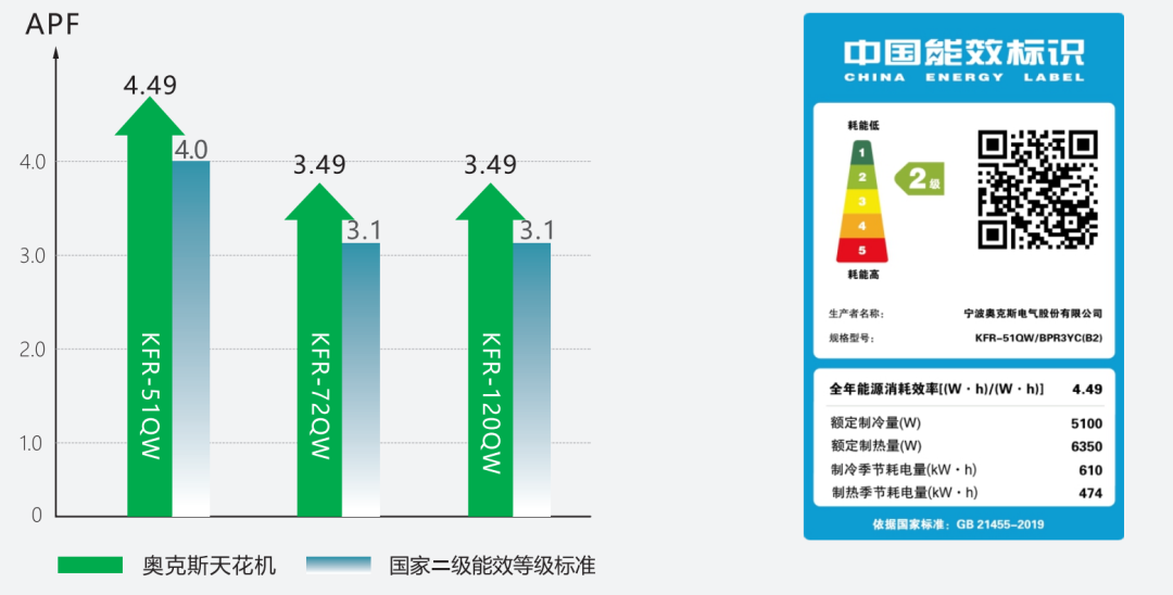 奥克斯360°出风天花机采用直流变频技术,APF值可达4.49,超国家二级能效标准,节能效果出众,为客户省下了一笔可观的电费。