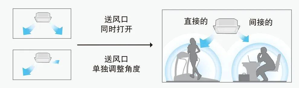 工作人员免不了进出室内室外,如果受到空调气流直吹,容易造成身体上的不适。为此配备气流温和的空调产品就十分重要,LG MULTI V 5 PRO商用多联机配置双出风天花机可根据使用者或使用环境需求的不同,在20°~70°范围内独立调节两个百叶的角度;四出风天花机内含四个电机驱动四个风口,每个送风口的送风角度均可单独调控,让办公区的各个角落都能感受舒适的制冷制热效果,避免在同一空间内距空调远近产生的温差感,让工作更舒适、高效。