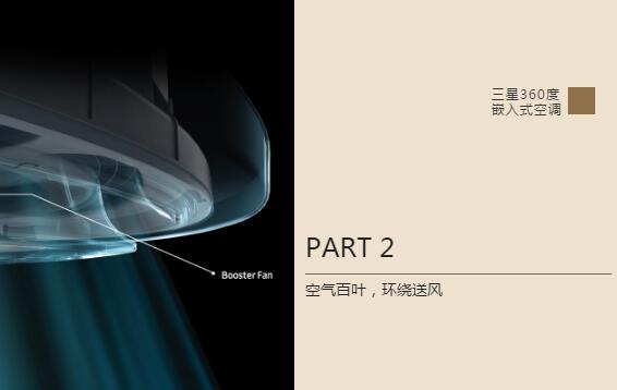 三星360度嵌入式空调以圆为灵感,将曲线设计融入到产品中,抛弃多余的、复杂的元素,用简练的方式传达简约的美,另外三星360度嵌入式产品气压调节以风控风,通过水平或垂直角度送风,避免直吹风感,仿佛徜徉在舒适春风中。
