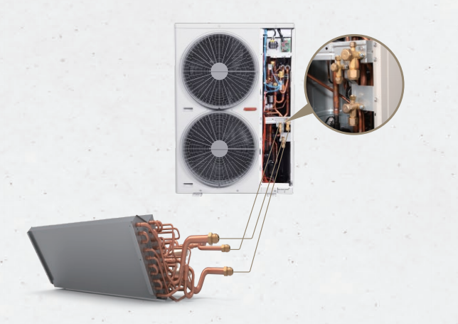 日立中央空调采用三根冷媒管和双换热器的特殊设计,实现机组的温度、湿度独立控制。VAM尊睿全效可实现高湿天气时,实现不降温除湿;阴冷潮湿天气时,实现升温除湿。