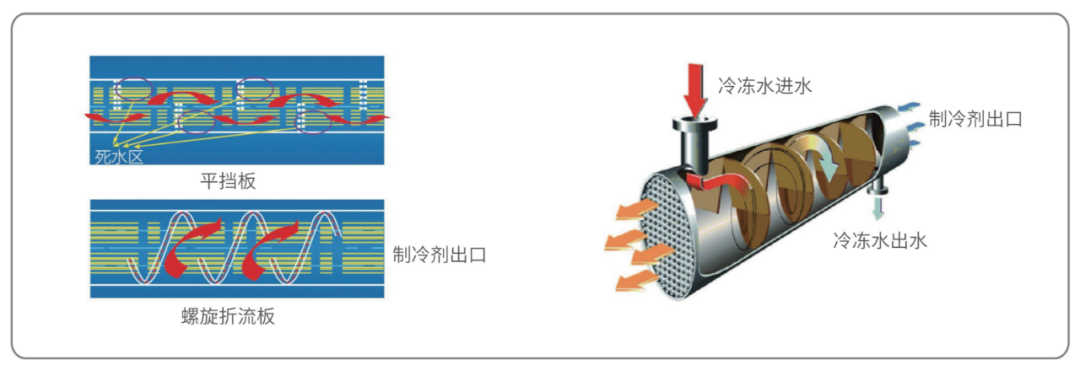 对于管壳式换热器,该模块机采用了新型螺旋折流板设计,避免死水区形成矩形空间,大大提高换热效率。
