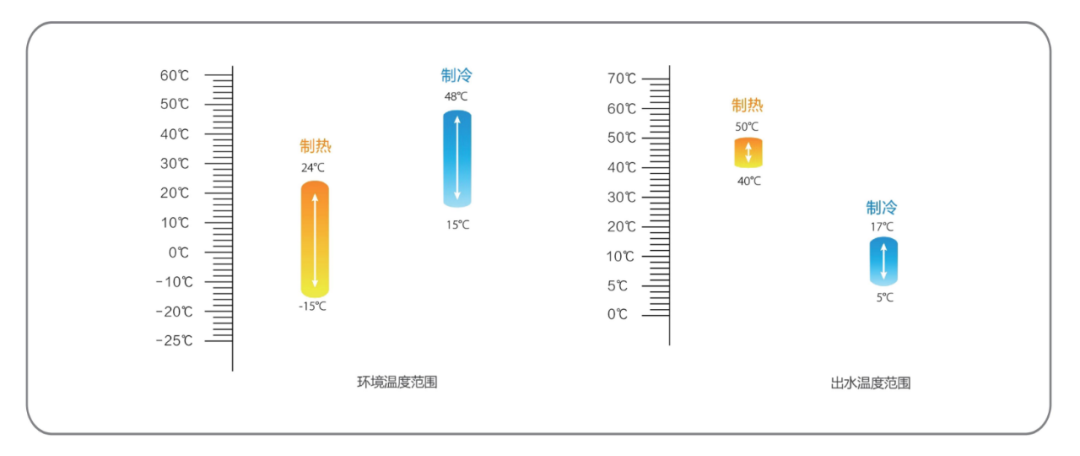 机组具有十分宽广的适用范围,可以在-15℃~48℃室外温度下稳定运行。