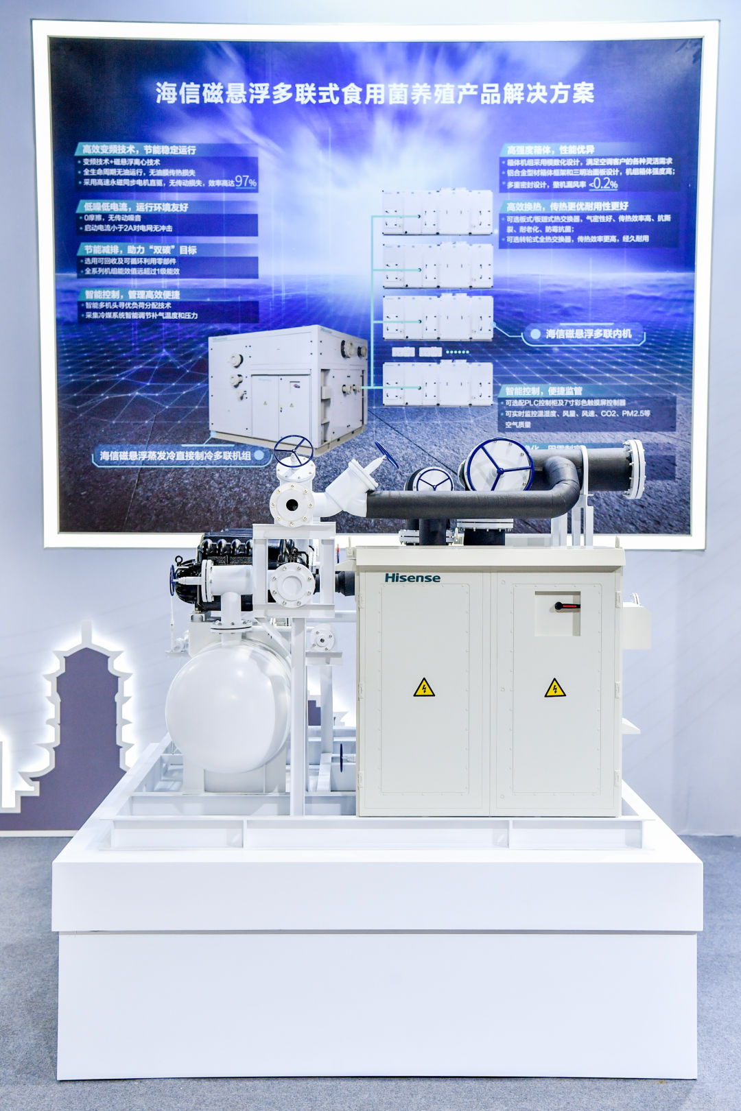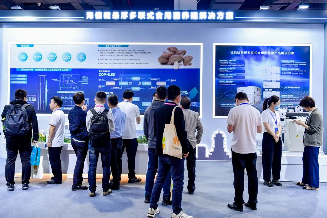 作为空气环境设计者,海信中央空调推出海信磁悬浮蒸发冷直接制冷多联机组,并展出磁悬浮多联式食用菌养殖解决方案,为菌菇的培育创造适宜、稳定的空气环境。解决方案得到了食用菌行业专家、经销商、甲方等强烈关注。