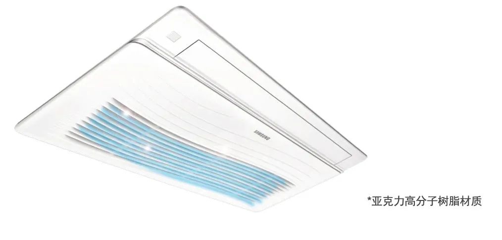 SAMSUNG WindFree™沐风嵌入式单向气流产品可选用水晶质感的波纹回风面板(亚克力高分子树脂材质),设计从流动的水波获取灵感,为吊顶带来一些灵动感。