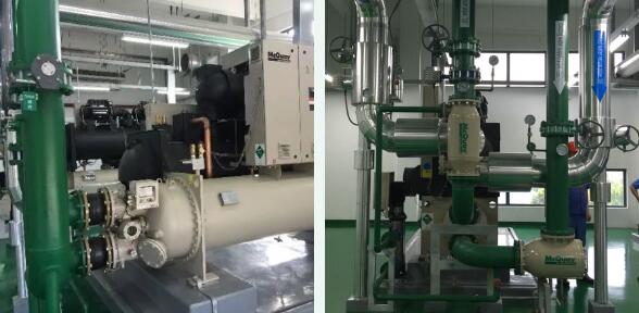 加装McQuay(清凌)高效端盖式在线清洗装置,通过微电脑控制程序设置清洗频率和次数,胶球利用水压差清洗冷凝器换热管壁上的污垢。保证温度端差增量不超过0.4℃,降低冷水机组能耗,节能5~15%。