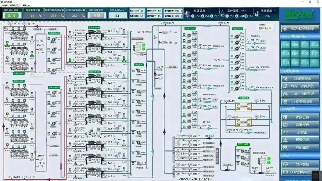 结合机房冷水机组、水泵、冷却塔等重要设备的详细运行实况,水泵水塔实施变频改造,优化水泵扬程,搭配麦克维尔自主研发的ECO智能群控系统,可以更好地监测运行数据,并改善运营情况。