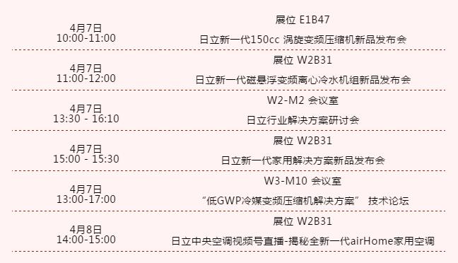 作为全球制冷空调行业引领者,日立注重与行业各界进行交流分享。立足自身百年精益制造和技术积累,持续为行业各方提供更多灵感和参考,携手共向美好未来。为此,在本次展会中,日立将举行多样产品发布、技术交流、互动直播等活动,干货满满,值得期待。