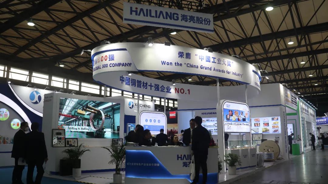 海亮简约大气的展位设计、精心布置的产品陈列、完善的产品解决方案,让人眼前一亮。同时国际贸易部的精英团队全天候在场为国内外客商提供专业细致的讲解与更多优质的解决方案。