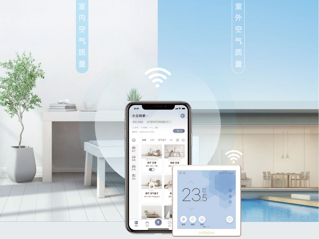 日立天净系列新风换气机能够实现空气质量可视化,通过传感器直接感知空气质量,联动控制。同时,可实现远程净化空气,智慧互联,回家即享洁净新风环境。